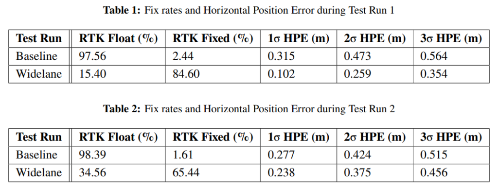 Testing results demonstrate a performance baseline with RTKLIB and analyze the performance improvement which can be obtained through the use of a positioning engine with support for wide-lane ambiguity resolution. The wide-lane capable positioning engines tested were: a modified version of RTKLIB, EmbedCM from HYFIX and Swift’s Starling Positioning Engine. High-level results using RTKLIB with Skylark RTK corrections demonstrate an improvement in 1σ Horizontal Accuracy from 29.6 cm (baseline) to 17.0 cm (wide-lane). Similar results were demonstrated with the EmbedCM and Starling positioning engines which will be presented in this paper.